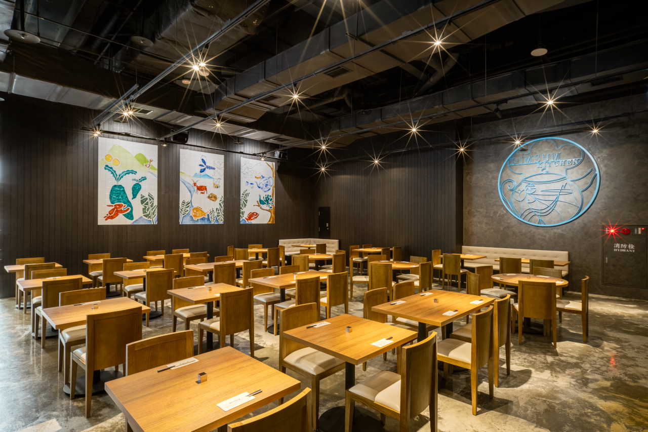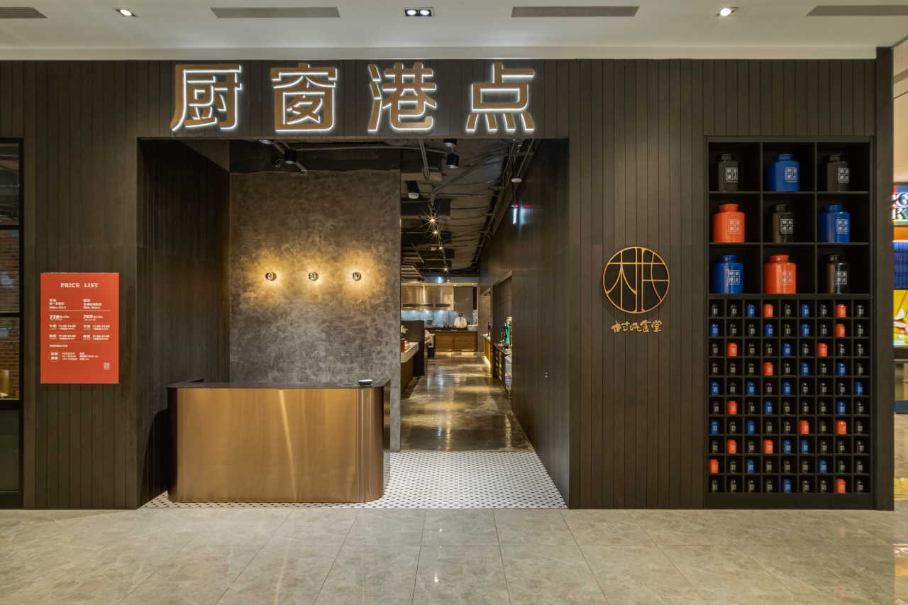 延續士林店的品牌概念,以「手工現做的功夫港點」與「真材實料的產地直送」作為設計起點,空間風格以香港殖民風為基底,融合現代簡約工業語彙,形塑出東西合併、清新卻有層次的空間表情。牆面的手工瓷磚畫與鐵花窗工藝細節,呼應著料理背後的職人精神與品牌核心。